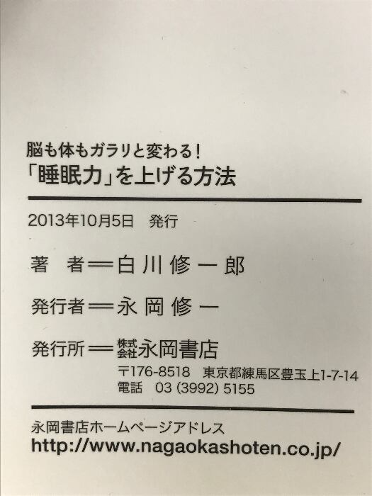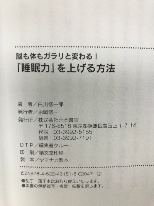 タイトル:脳も体もガラリと変わる!「睡眠力」を上げる方法 永岡書店 白川 修一郎