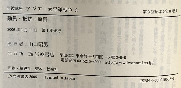 タイトル:岩波講座 アジア・太平洋戦争 3 動員・抵抗・翼賛 岩波書店 倉沢 愛子