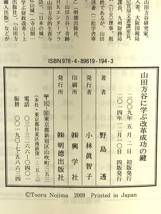 タイトル:山田方谷に学ぶ改革成功の鍵 明徳出版社 野島 透