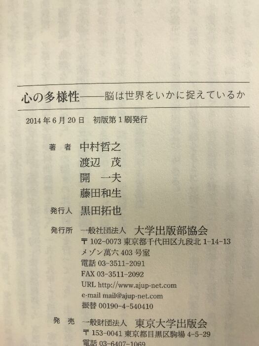 タイトル:心の多様性: 脳は世界をいかに捉えているか 東京大学出版会 中村 哲之