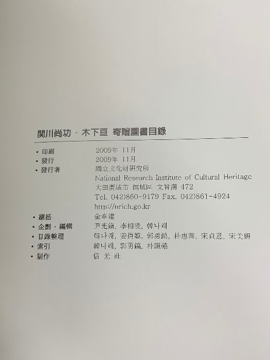 タイトル:関川尚功・木下亘 寄贈国書目録 国立文化財研究所 2009