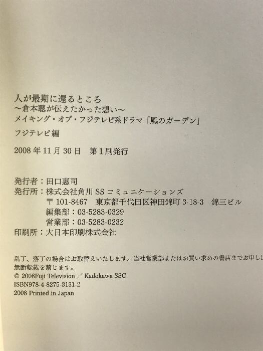 タイトル:人が最期に還るところ: メイキング・オブ・フジテレビ系ドラマ「風のガーデン」 倉本聰が伝えたかった想い (角川マガジンズ) フジテレビ