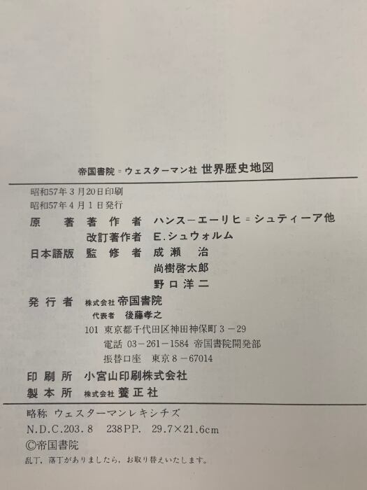 タイトル:世界歴史地図 ATLAS OF WORLD HISTORY 帝国書院 ウェスターマン社
