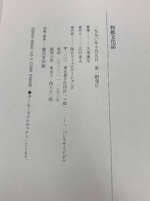 タイトル:和紙文化誌 (株)マイナビ出版 久米 康生