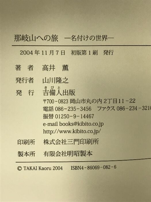 タイトル:那岐山への旅 吉備人出版 高井 薫