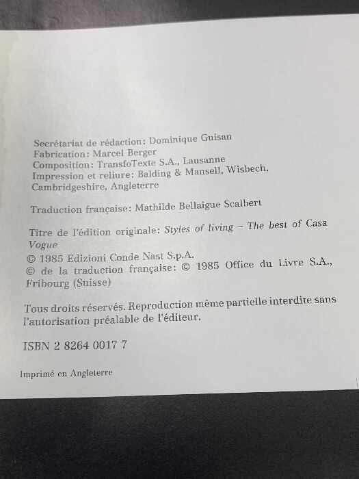 タイトル:Styles d'interieur CASA VOGUE lsa Vercelloni office du Livre