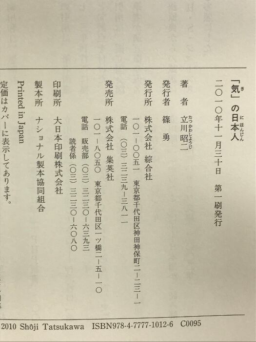タイトル:「気」の日本人 集英社クリエイティブ 立川 昭二