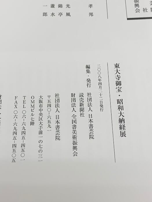 図録 東大寺御宝・昭和大納経展 2008年日本書芸院展 日本書芸院 読売新聞社 2008