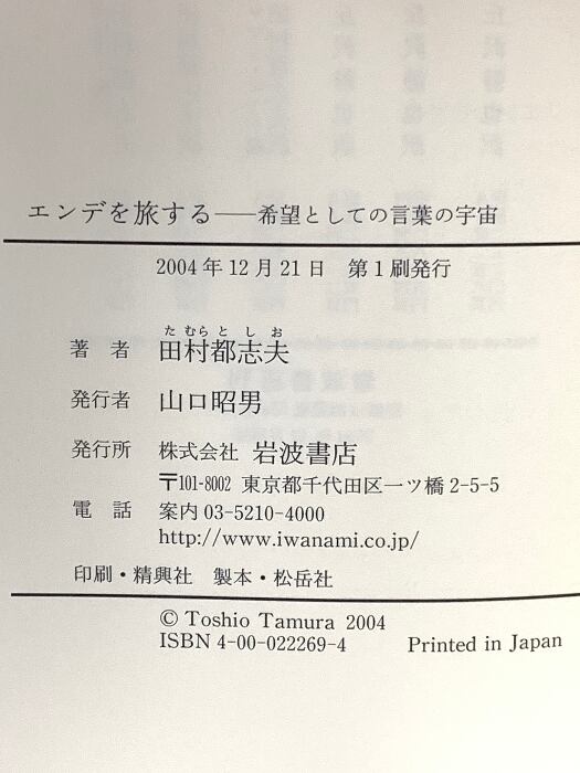 タイトル:エンデを旅する: 希望としての言葉の宇宙 岩波書店 田村 都志夫