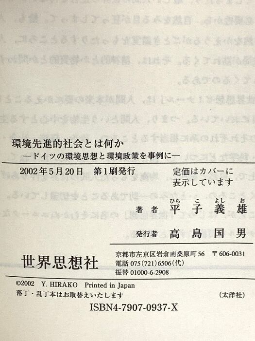 タイトル:環境先進的社会とは何か: ドイツの環境思想と環境政策を事例に (世界思想ゼミナール) 世界思想社教学社 平子 義雄