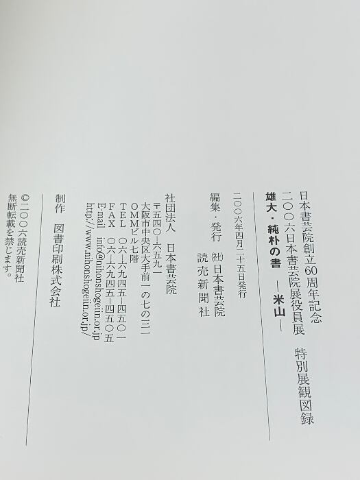 図録 米山 雄大・純朴の書 二〇〇六 日本書芸院展役員展 特別展観図録 日本書芸院 読売新聞社