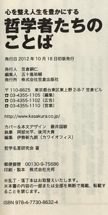 心を整え人生を豊かにする 哲学者たちのことば 笠倉出版社 哲学名言研究会