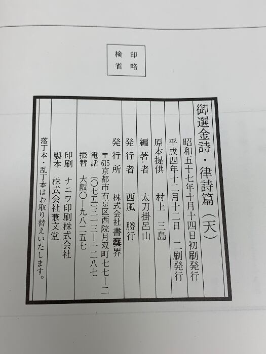 タイトル:御選金詩 天・地 太刀掛呂山・訓註 書藝界 2冊セット