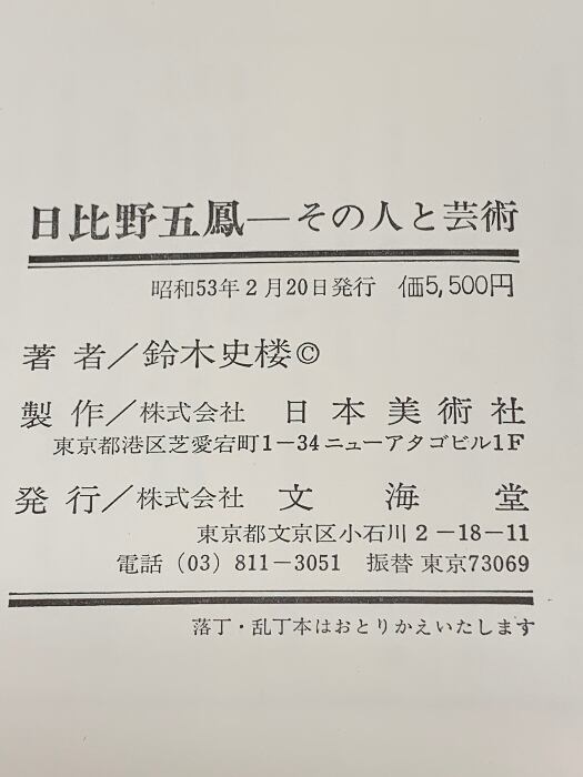 タイトル:日比野五鳳 その人と芸術 鈴木史楼 文海堂 昭和53年