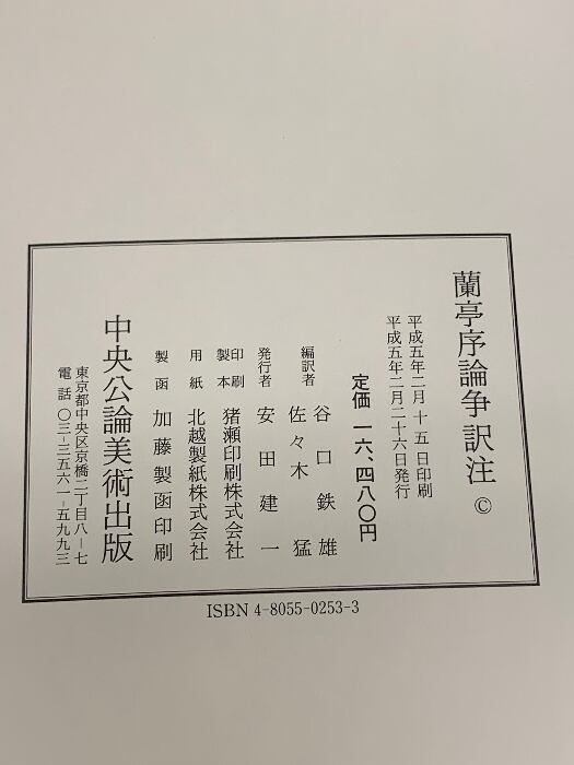 蘭亭序論争訳注 中央公論美術出版 谷口 鉄雄