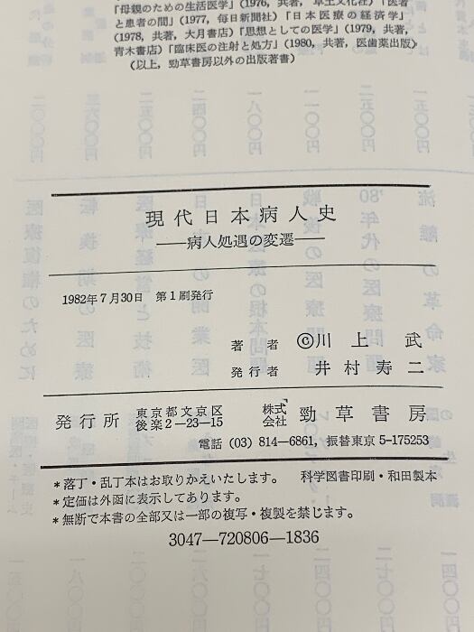 タイトル:現代日本病人史―病人処遇の変遷 勁草書房 川上武