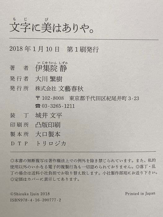 タイトル:文字に美はありや。 文藝春秋 伊集院 静