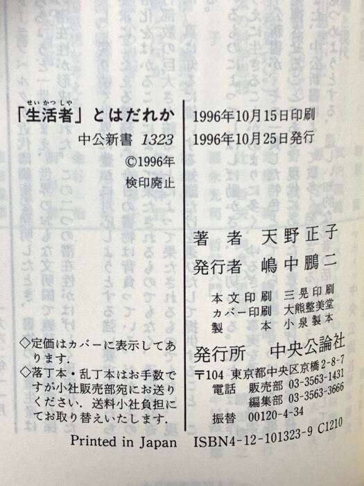 タイトル:生活者とはだれか: 自律的市民像の系譜 (中公新書 1323) 中央公論新社 天野 正子