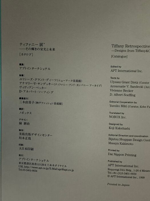 図録 ティファニー展 その輝その輝きの栄光と未来 1837-1999 アプトインターナショナル