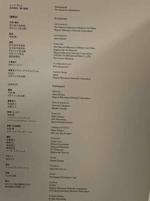 図録 レンブラント 光の探求/闇の誘惑 2011 日本テレビ放送網株式会社