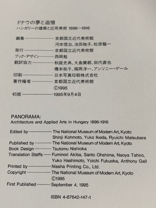 図録 ドナウの夢と追憶 ハンガリーの建築と応用美術 1896-1916 京都国立近代美術館 東京国立近代美術館 1995-1996