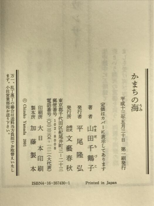 タイトル:かまちの海 文藝春秋 山田 千鶴子