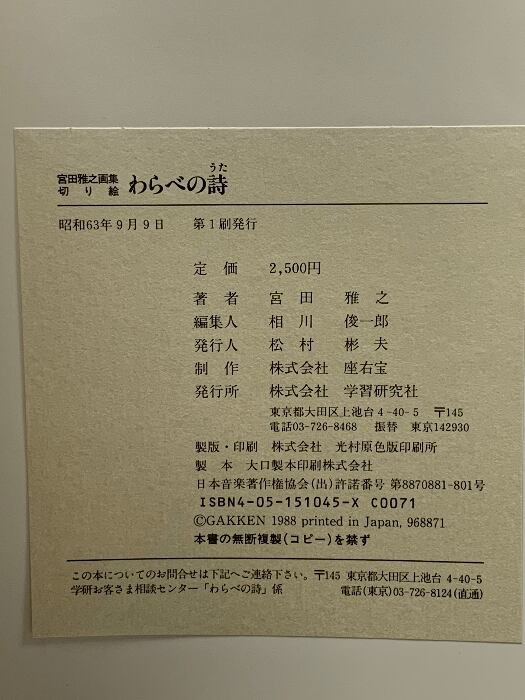タイトル:図録 宮田雅之画集 切り絵 わらべの詩 昭和63年 学習研究所