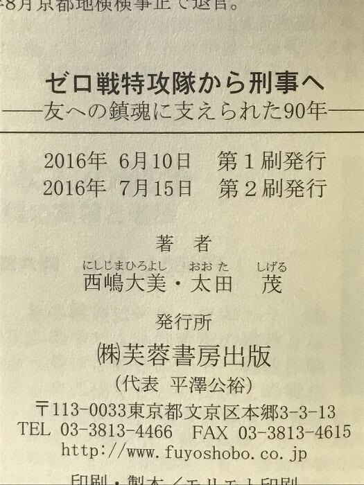 タイトル:ゼロ戦特攻隊から刑事へ 友への鎮魂に支えられた90年 芙蓉書房出版 西嶋 大美
