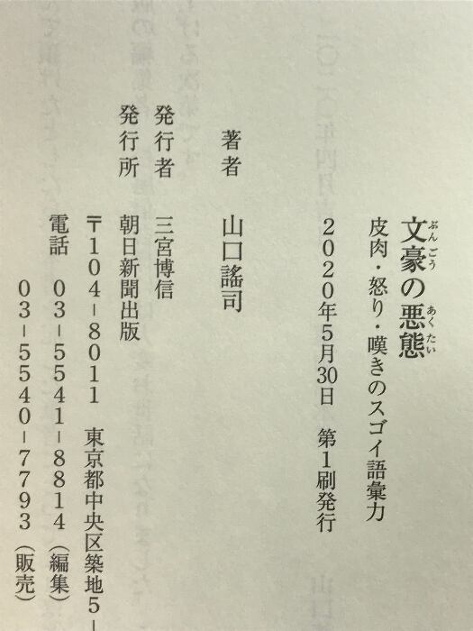 タイトル:文豪の悪態 皮肉・怒り・嘆きのスゴイ語彙力 朝日新聞出版 山口謠司