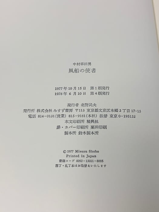 タイトル:風船の使者―メルヘン集 みすず書房 中村草田男