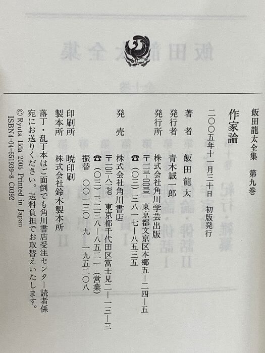 タイトル:飯田龍太全集 第九巻 作家論 角川学芸出版 飯田 龍太