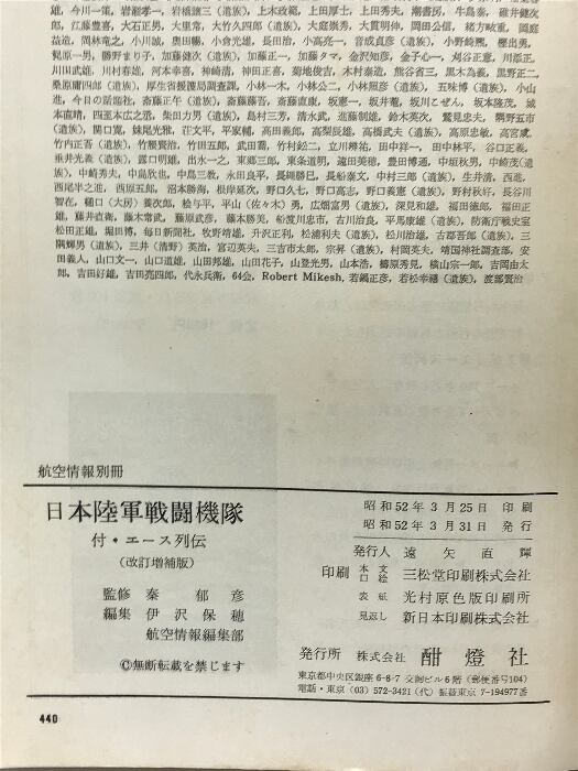 日本陸軍戦闘機隊(改訂増補版)付・エース列伝 航空情報別冊 酣燈社 昭和52年