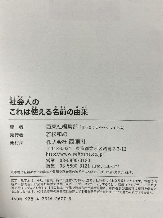 社会人のこれは使える名前の由来 西東社 西東社編集部