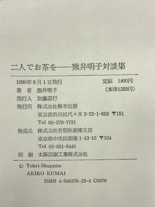 タイトル:二人でお茶を: 熊井明子対談集 桃李出版 熊井 明子