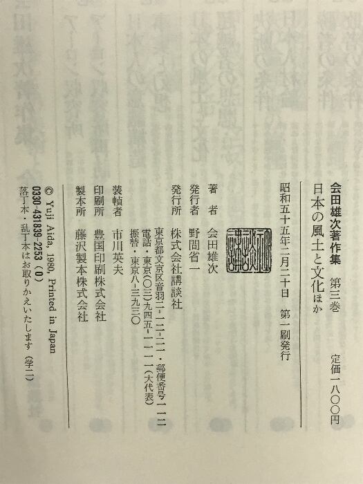 タイトル:会田雄次著作集〈第3巻〉日本の風土と文化.超越者の思想 講談社 会田雄次