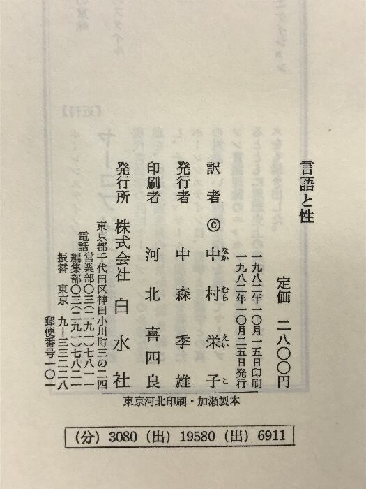 タイトル:言語と性―文化記号論の試み 白水社 ピエール・ギロー