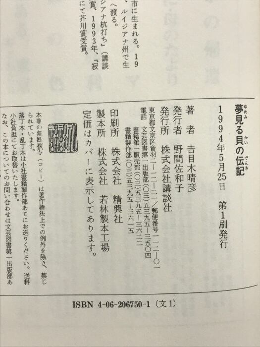 夢見る貝の伝記 講談社 吉目木 晴彦