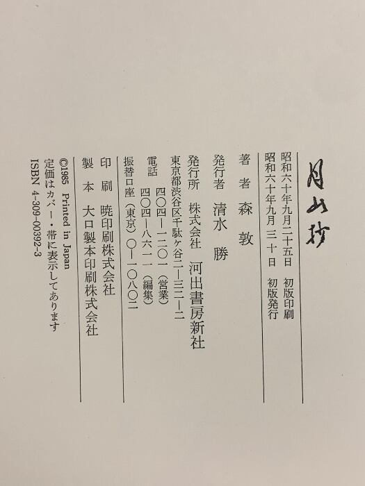 月山抄 河出書房新社 森 敦