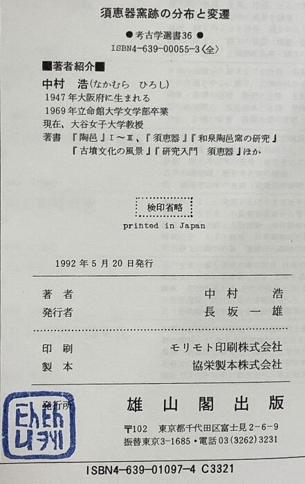 タイトル:須恵器窯跡の分布と変遷 (考古学選書 36) 雄山閣 中村 浩