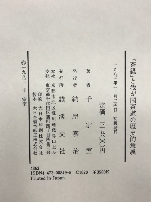 タイトル:『茶経』と我が国茶道の歴史的意義 淡交社 千 宗室