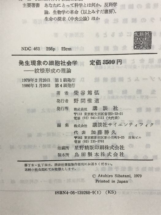 発生現象の細胞社会学―紋様形式の理論 講談社 柴谷篤弘