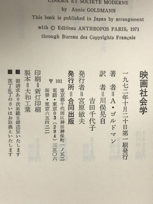 タイトル:映画社会学 合同出版 アニー・ゴルドマン