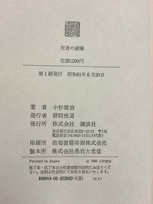 タイトル:死者の威嚇 講談社 小杉 健治