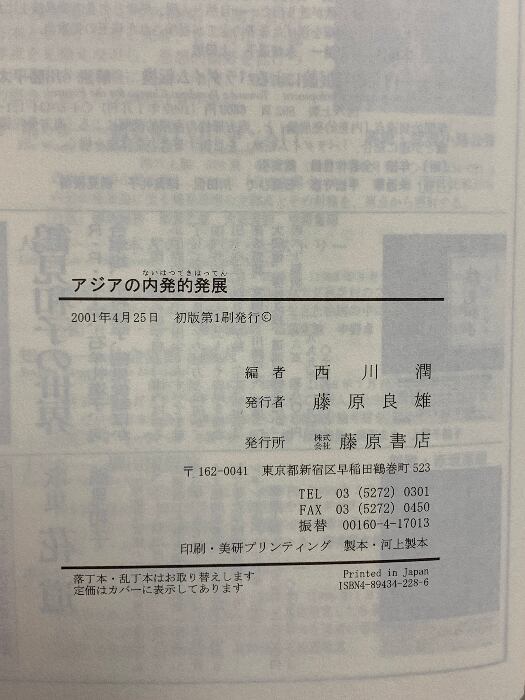 タイトル:アジアの内発的発展 藤原書店 西川 潤
