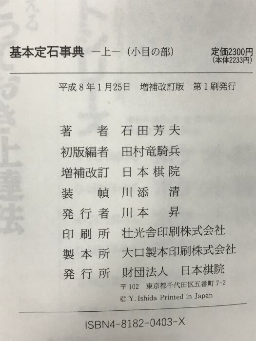 タイトル:基本定石事典 上巻 増補改訂版 日本棋院 石田 芳夫