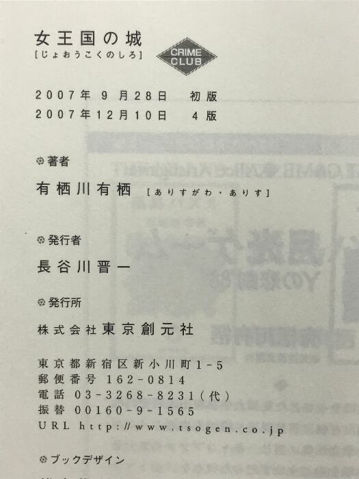 タイトル:女王国の城 (創元クライム・クラブ) 東京創元社 有栖川 有栖
