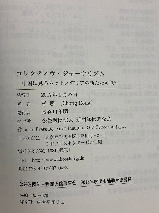 タイトル:コレクティヴ・ジャーナリズム-中国に見るネットメディアの新たなる可能性- 新聞通信調査会 章 蓉