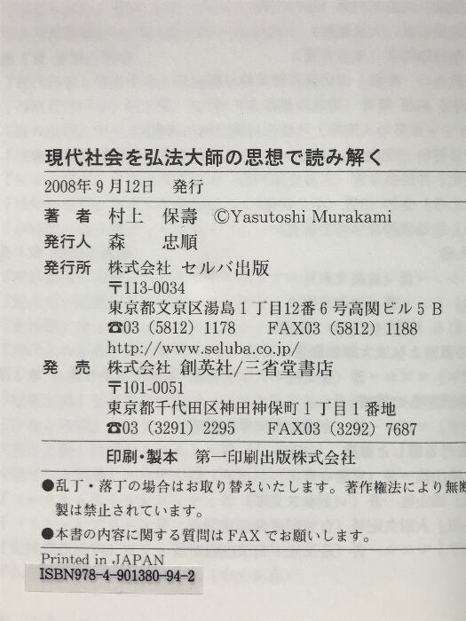 タイトル:現代社会を弘法大師の思想で読み解く セルバ出版 村上 保壽