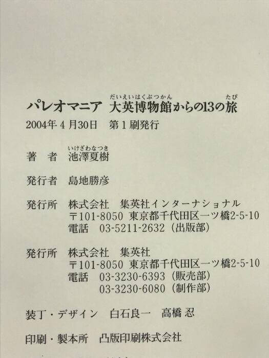 タイトル:パレオマニア 大英博物館からの13の旅 集英社インターナショナル 池澤 夏樹