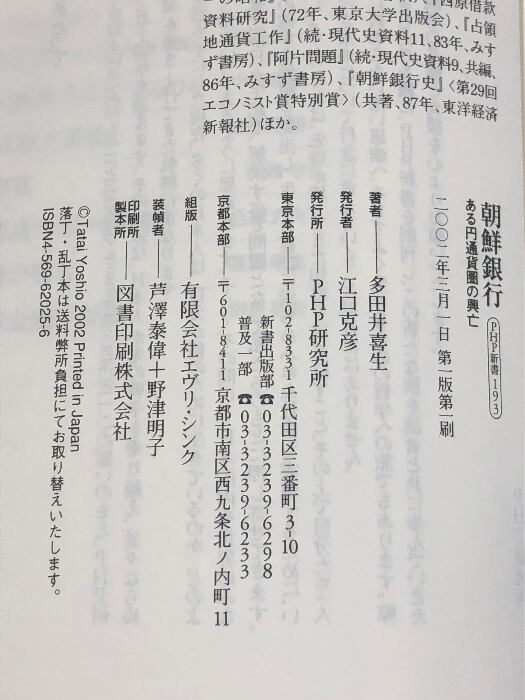 朝鮮銀行: ある円通貨圏の興亡 (PHP新書 193) PHP研究所 多田井 喜生
